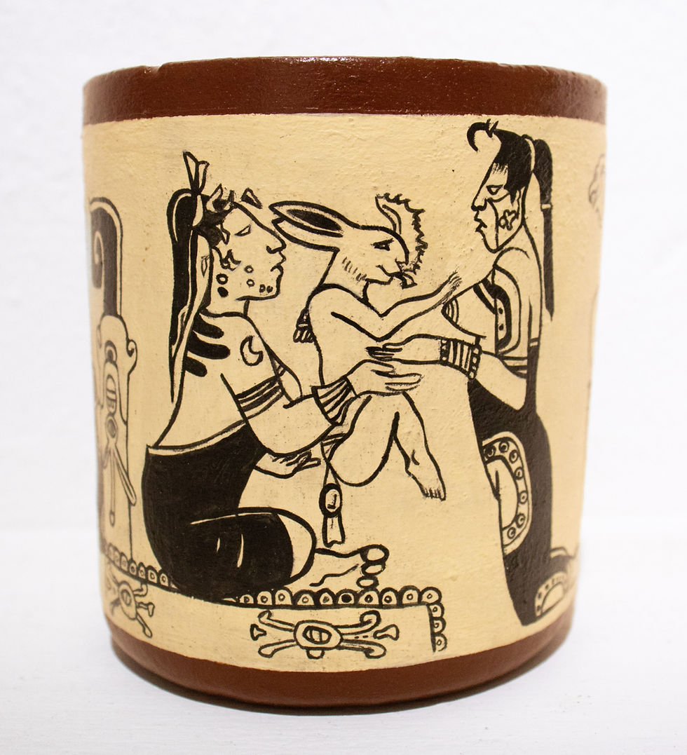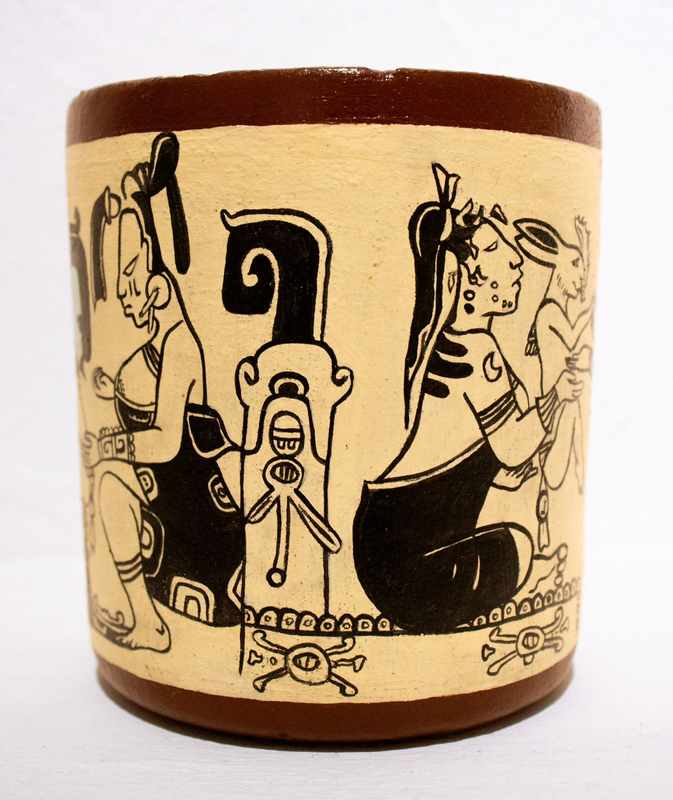 La serie RELIQUIAS es un nuevo proyecto de investigación y creación (aún en proceso) de Galería-Taller IK-KAN a cargo de su director el artista Rafael Baca. Donde se decide tomar como base el arte prehispánico de las culturas más representativas del México antiguo. Como ejemplo el caso de los “incensarios” que toman su inspiración en las grandes obras de los maestros palencanos de la época del clásico maya en la región de la enigmática selva chiapaneca y son reinventadas por el artista utilizando como base conceptual la composición original de dichos objetos y a través de un estudio minucioso y con un profundo respeto los transforma y reinventa con la presencia de elementos y animales que estuvieron estrechamente ligados a la esencia de las deidades que se representan, creando así piezas únicas que se distinguen de las originales y logran una identidad propia afín a la línea del trabajo y filosofía de Galería-Taller IK-KAN. La investigación en nuestro taller nos lleva a experimentar con materiales y técnicas modernas como son la resina el caucho de silicón, fibra de vidrio, arcillas epoxicas y su combinación con distintos minerales para lograr piezas con una mayor resistencia pero que asemejan el estilo de materiales antiguos, de esta manera logramos piezas que evocan el pasado glorioso de nuestras culturas y el toque de los grandes artistas del pasado, trayéndolas al presente de una manera renovada.